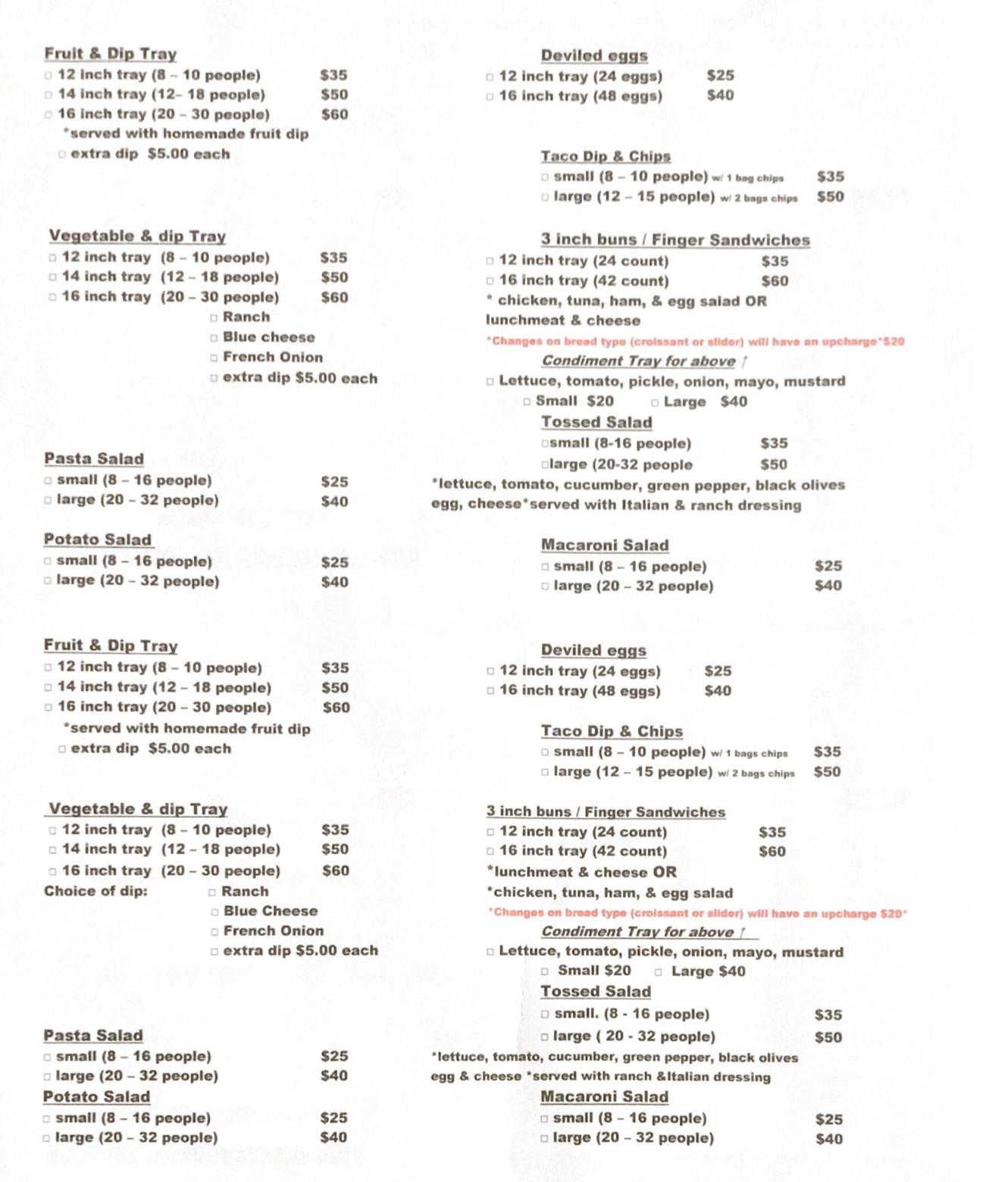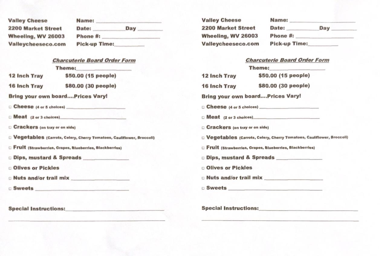Are you hosting a party or event and need light catering? Are you attending a potluck or similar event and need something to bring? Trust the staff at Valley Cheese Co. to help! We offer a variety of trays, pasta and macaroni salad, finger sandwiches, and more. Take a tray of our delicious Amish meats and cheeses to your party. Or grab some of our delicious pasta salad, macaroni salad, or deviled eggs to take to your family picnic. Download our party tray order form, fill it out, and bring it to our deli counter to place your order today. We recommend that you place your catering or party tray order at least 24 hours in advance so that we have time to prepare your full order. Holidays require advanced notice.